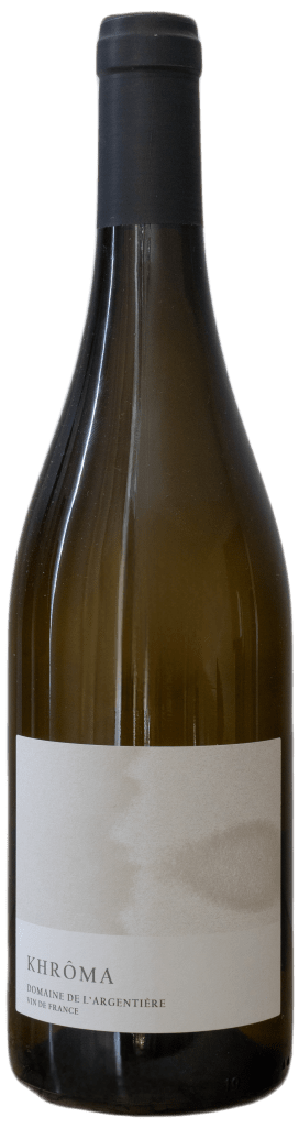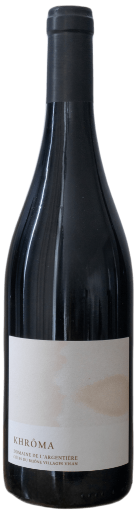 Inspiré du Grec ancien Khrôma signifiant couleur, il se décline en blanc et en rouge. L’illustration représente la migration du vin lors d’une chromatographie réalisée pour mesurer l’avancée de la fermentation malolactique.
